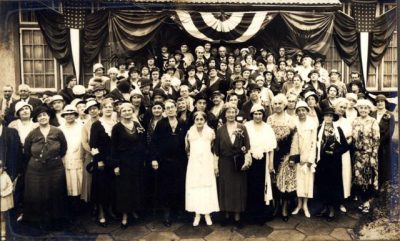 The year 1897 saw Mrs. E.G.G. Munsell installed as president and she served for seventeen years. During her administration, the club maintained a kindergarten from 1900 to 1904 in the public school building, assuming most of the expenses and hiring a qualified teacher. Also, about this time, the erection of the present clubhouse was begun. On February 18th, 1915, the building was formally dedicated by Mrs. W. S. Jennings, State Federation President, as a lasting memorial to Mrs. Hamilton and Mrs. E.G.G Munsell, President.